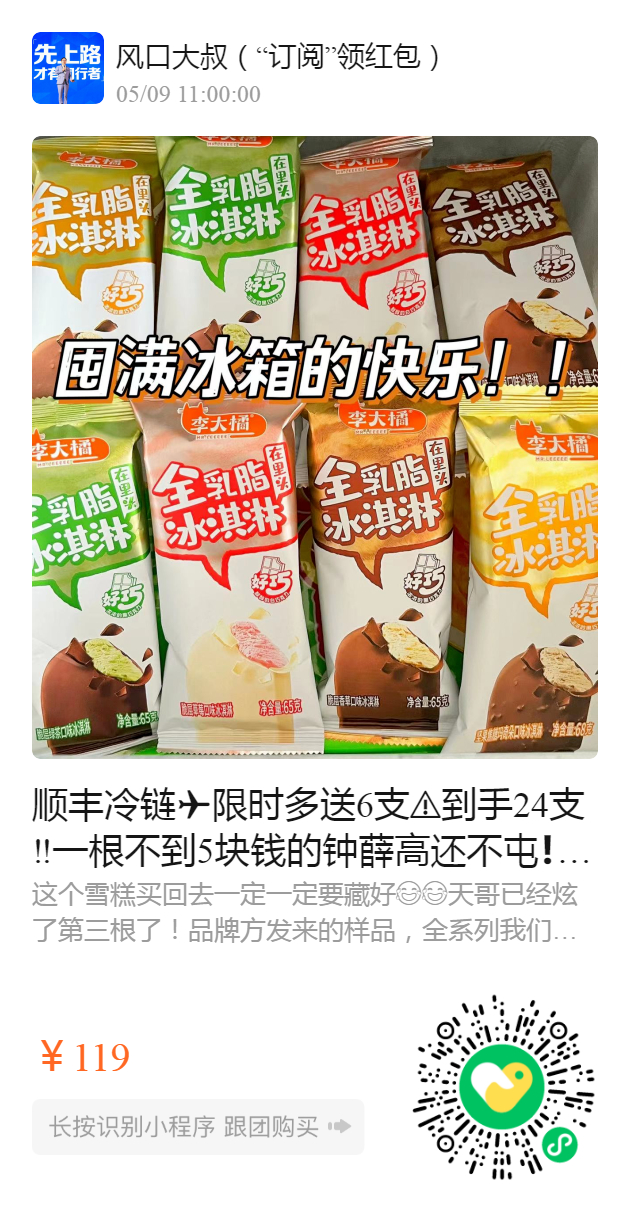 顺丰冷链️限时多送6支️到手24支‼️一根不到5块钱的钟薛高还不屯❗我宣布最好吃的雪糕😋 钟薛高旗下子品牌【李大橘脆皮系列】