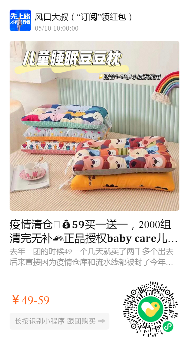 疫情清仓🥲𝟓𝟗买一送一,2000组清完无补正品授权𝐛𝐚𝐛𝐲 𝐜𝐚𝐫𝐞儿童睡眠豆豆枕