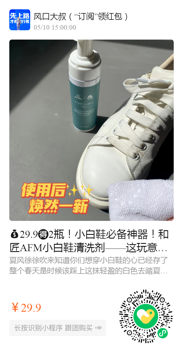 29.9️2瓶!小白鞋必备神器!和匠AFM小白鞋清洗剂——这玩意必须是家家中常备,特别方便,一涂一抹,鞋子马上白白白!