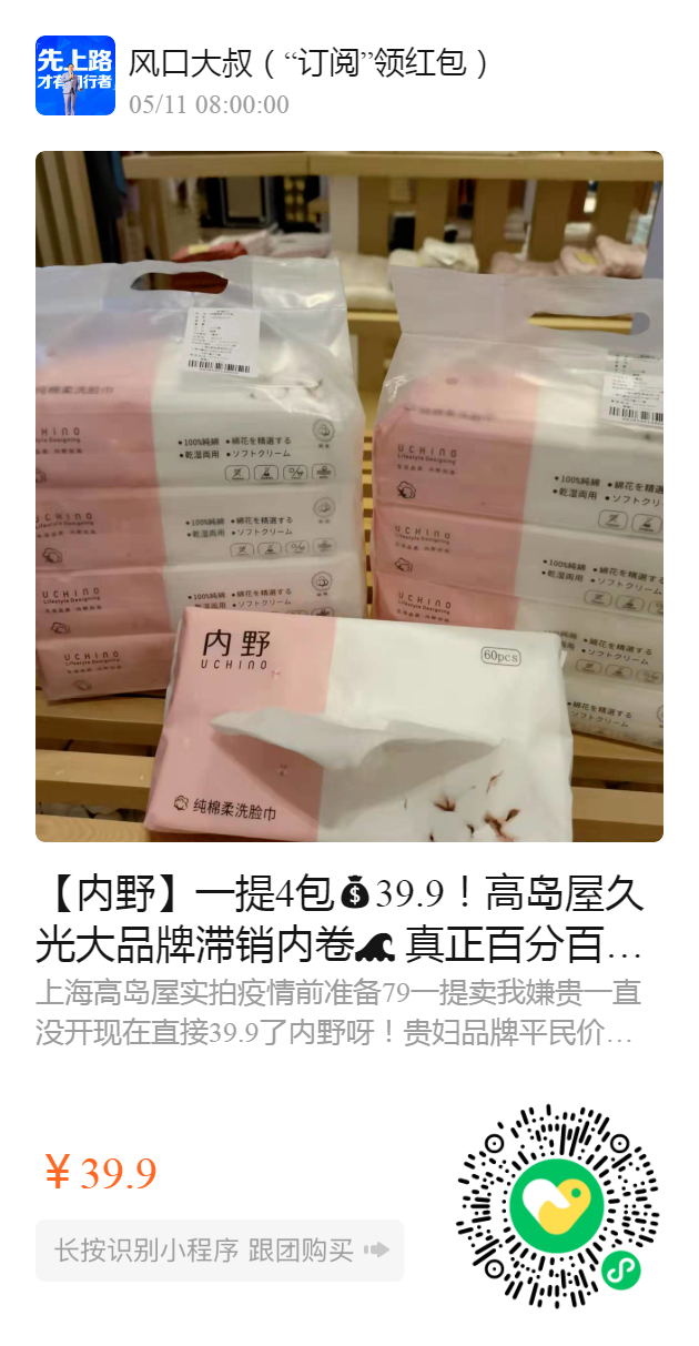 【内野】一提4包39.9!高岛屋久光大品牌滞销内卷 真正百分百💯纯棉的棉柔巾!