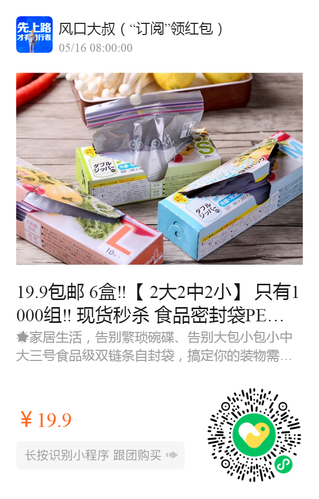 19.9包邮 6盒‼️ 【 2大2中2小】 只有1000组‼️ 现货秒杀 ️食品密封袋PE冷冻保鲜袋Best Select 干湿两用!全球密封性超好的食品密封袋! 🧸安全锁鲜,优选双链条食品级保鲜袋️ 小中大三号,从小食到大物体,统统可装‼️ 💕 必备冷冻保鲜袋【6件套】