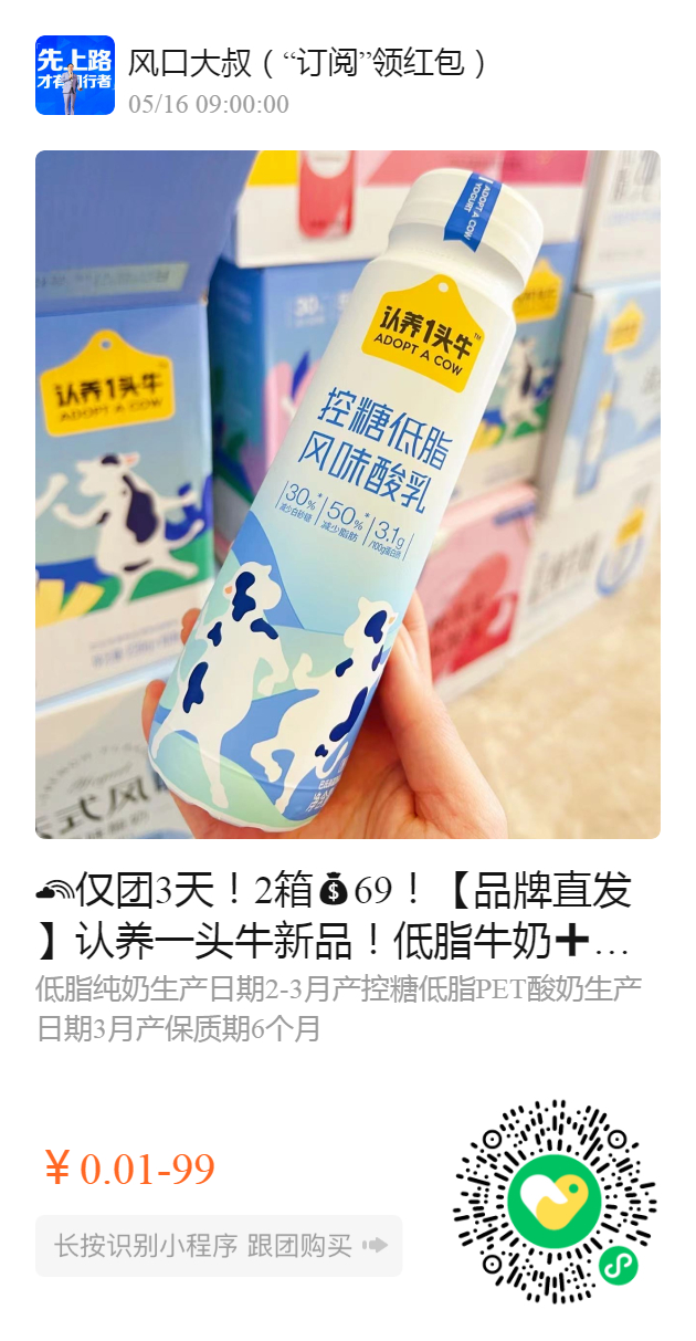 仅团3天!2箱69!【品牌直发】认养一头牛新品!低脂牛奶➕低脂PET酸奶!