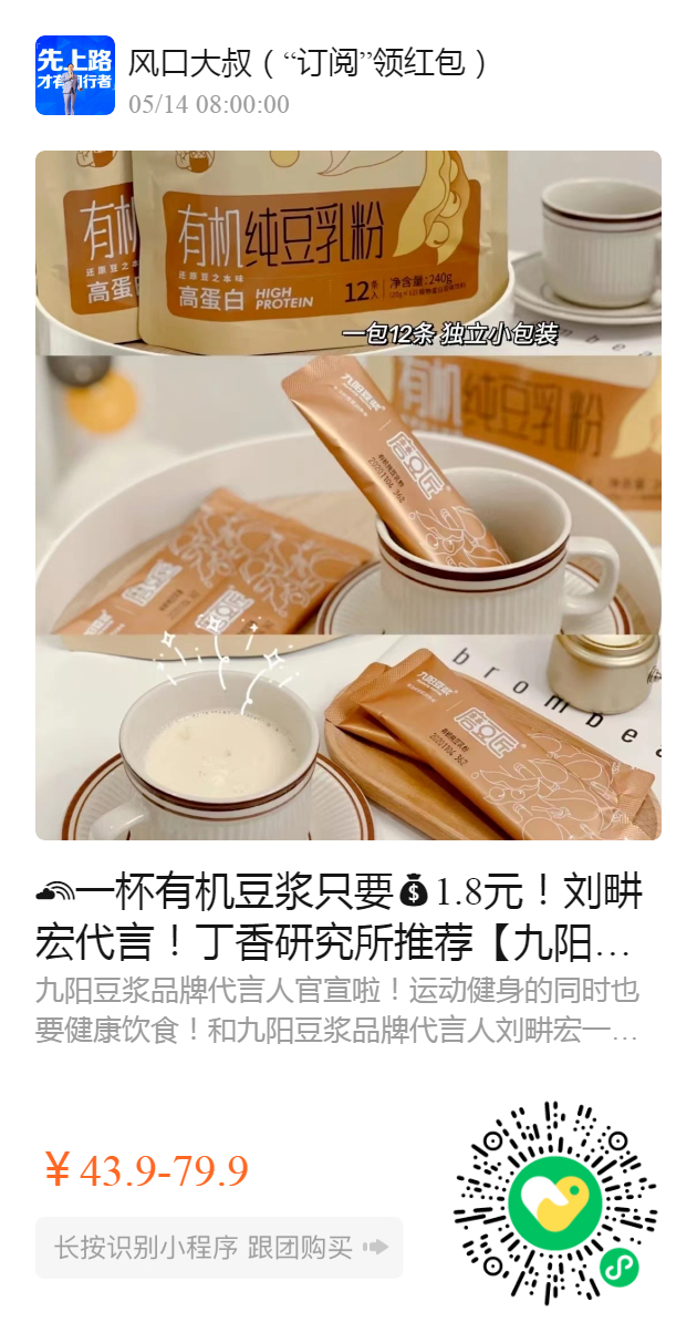 一杯有机豆浆只要1.8元!刘畊宏代言!丁香研究所推荐【九阳豆浆】系列来啦!一分钟get现磨豆浆!