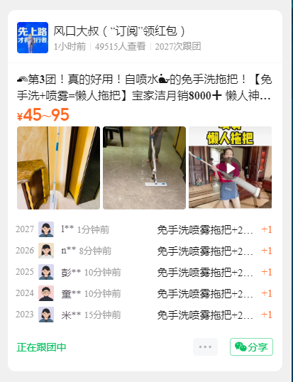 第3团!真的好用!自喷水的免手洗拖把!【免手洗+喷雾=懒人拖把】宝家洁月销8000➕ 懒人神器 方便收纳高颜值! 自带水箱 不脏手🤲 零死角清洁家居好物!站着拖地不弯腰,想省事儿又爱干净的就买它🏻买就送送15片清洁片!水箱容量220ml,发蓝白色。