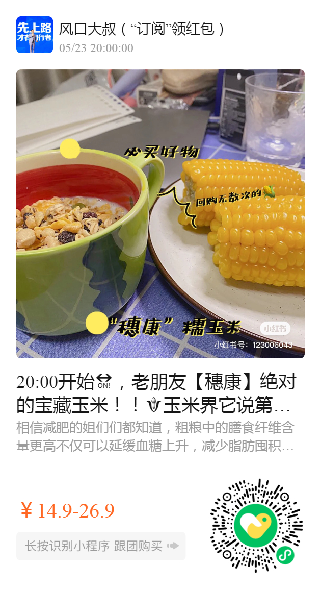 20:00开始🔛,老朋友【穗康】绝对的宝藏玉米!!🌽玉米界它说第二没人敢说第一! 来自北纬四十一度!粒粒分明~吃完口齿留香!还带有资质哦!吃得放心,甜甜糯糯太好吃了~孕妇、宝宝想吃就吃,还有罐装的玉米粒,省时又省力,太好吃啦!!