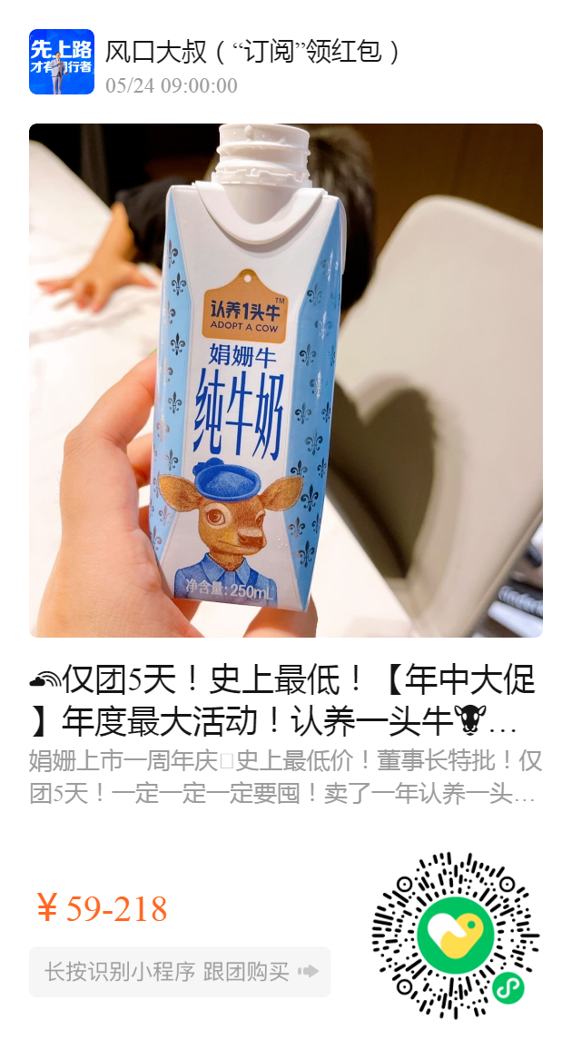 仅团5天!史上最低!【年中大促】年度最大活动!认养一头牛品牌直发/娟姗上市一周年庆!