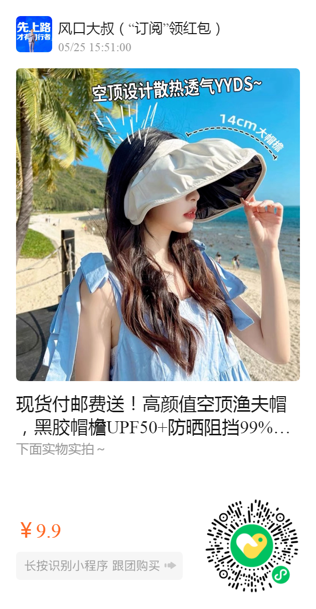 现货付邮费送!高颜值空顶渔夫帽,黑胶帽檐UPF50+防晒阻挡99%的紫外线,14cm帽檐,360度防晒,显脸小,可折叠,收纳方便!!5色可选~小长假出行必备!现货发!疫情不容易 工厂积压库存亏本清!✔️✔️️️
