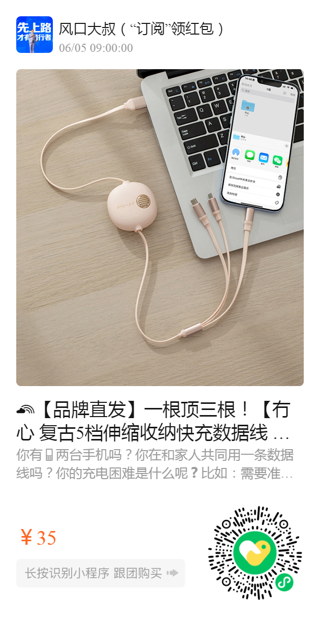【品牌直发】一根顶三根!【冇心 复古5档伸缩收纳快充数据线 】三合一数据线120cm多头快充‼ ️抗弯折不断线,出门一条数据线搞定️ ✔️让充电变简单! ✔️长度自由调节,快速充电很实用❗ 💕柔软扁线💯耐弯折不易断! 支持充电和数据传输功能✅快充不伤机