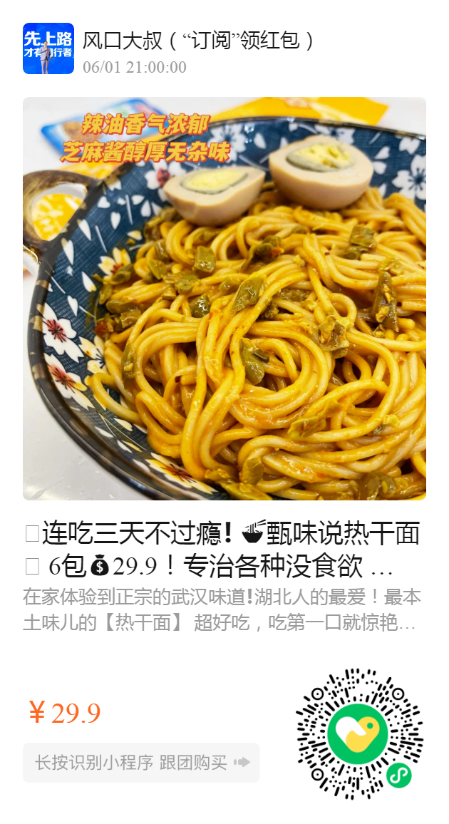 🤤连吃三天不过瘾❗️ 甄味说热干面🧊 6包29.9!专治各种没食欲 !好吃到舔碗底❗️强烈安利❗️ 快抛弃油腻且高脂的泡面吧!五分钟、几块钱一碗神仙面不香吗🤤有调料汁包,芝麻酱包,辣椒油包!还赠送酸豆角!新日期~