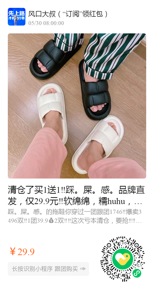 清仓了买1送1‼️踩。屎。感。品牌直发,仅29.9元‼️软绵绵,糯huhu,像踩在云端️一样~ 今年的新升级版鞋面条纹防滑,这样的设计,不捂汗!不捂汗!不捂汗❗造型更软萌,还可当情侣拖鞋噢 必须给家人全部配齐,好穿到飞起❗❗ ▔▔▔▔▔▔▔▔▔▔▔▔▔▔▔▔▔▔ 点击下方,直接购买