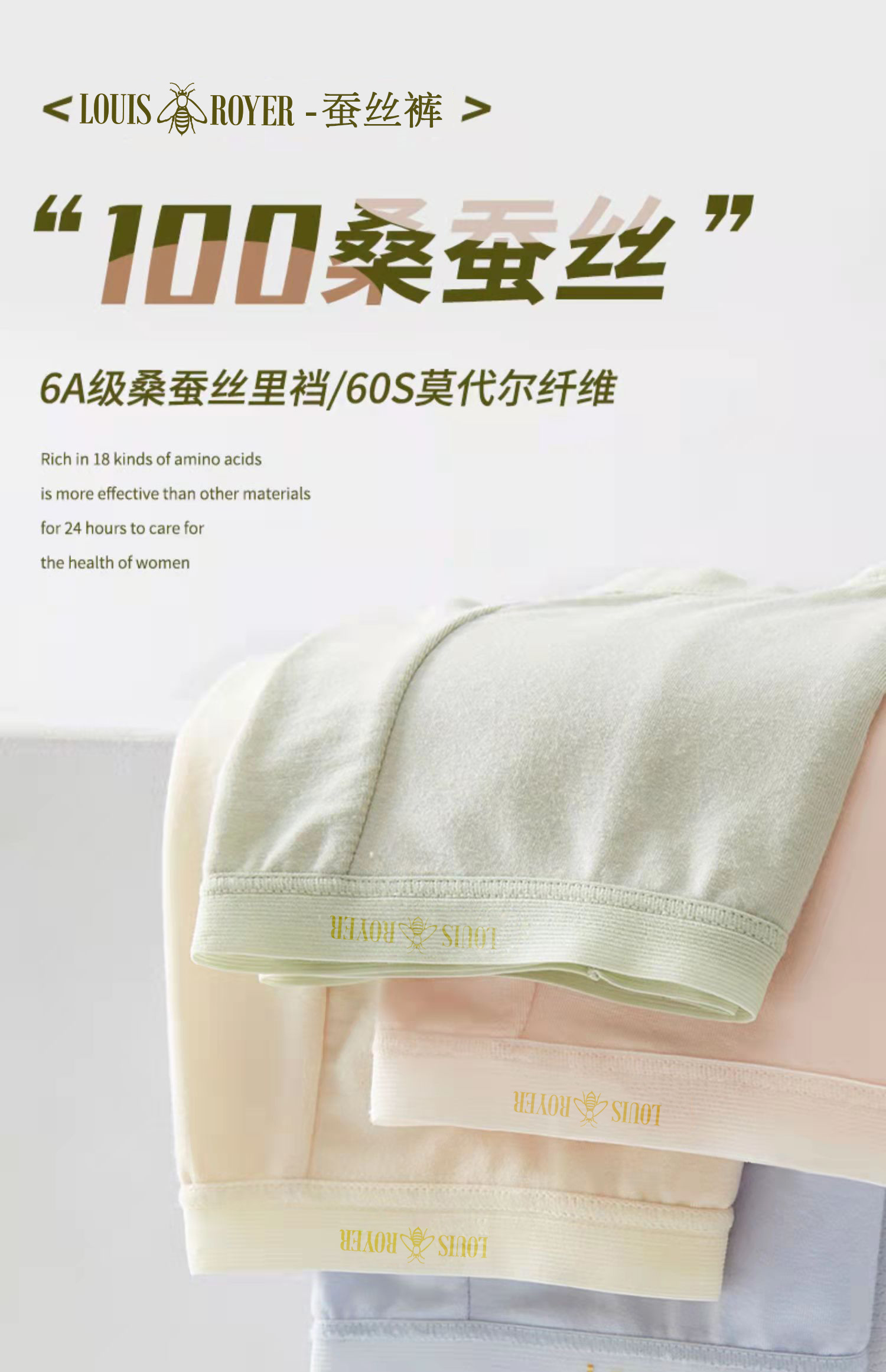 产品名称:法国利蜂新品桑蚕丝莫代尔内裤