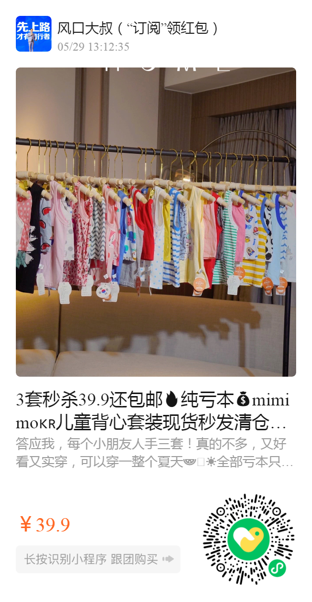 最后3万套一万组,忍痛血亏秒杀一套不留,售完无补,妈妈们安心入手。夏天这种背心套装真的出镜率太高了!