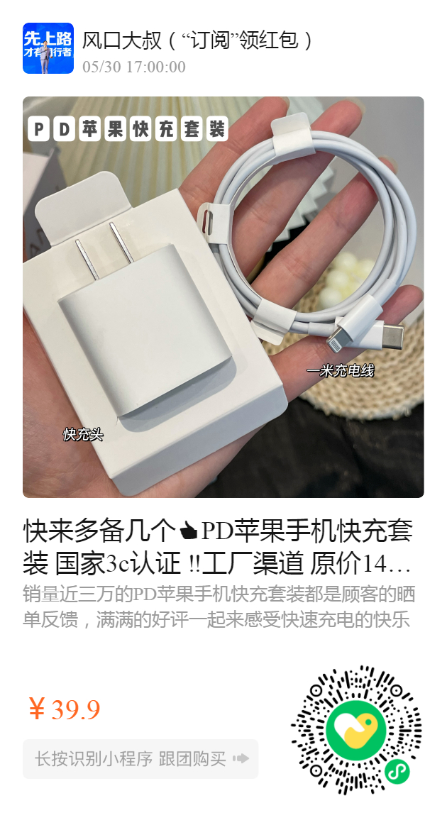 20w插头➕mfi认证数据线套装,与G网一样质量 价格只要G网的零头。
