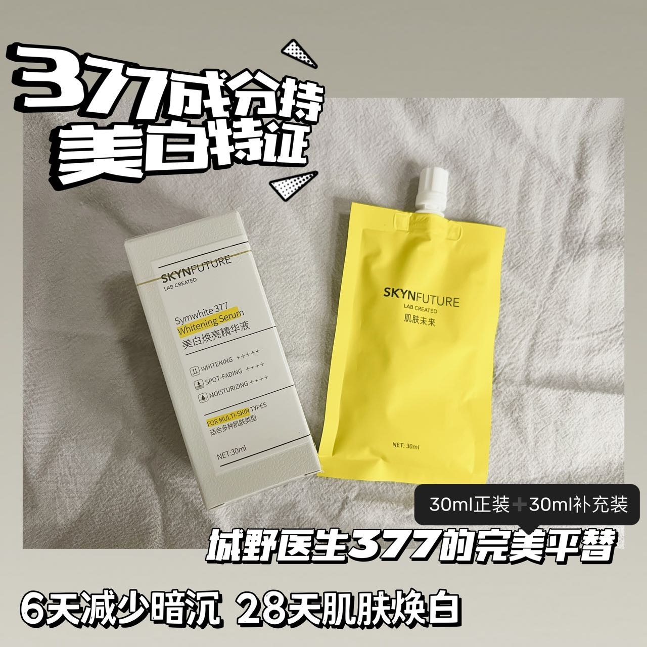 国货美白精华之天花板!这性价比就给我大胆用,直接囤!想变白认准肌肤未来377就行啦~
