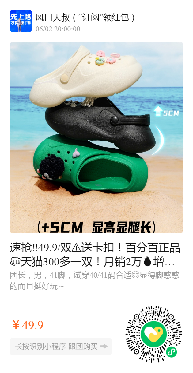 速抢‼️49.9/双️送卡扣!百分百正品天猫300多一双!月销2万增高洞洞鞋!EVA厚底5厘米!超轻!Q弹踩屎感!