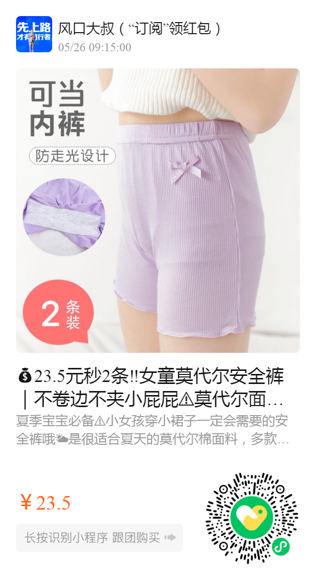 23.5元秒2条‼️女童莫代尔安全裤|不卷边不夹小屁屁️莫代尔面料轻薄丝滑又透气 女宝宝的安全守护者🏻穿漂亮小裙子的季节,怎么少的了防走光安全裤‼️