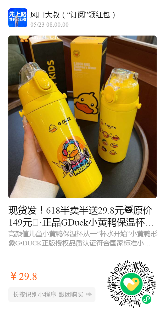 现货发!618半卖半送29.8元😻原价149元🥛·正品GDuck小黄鸭保温杯500ML 为了满足宝宝们随时随地喝水的需求,应用锁温黑科技,保温长达6-12小时🕰️圆润饱满的外型,Q萌可爱,颜值在线,可保冷可保温还是蛮实用的很值