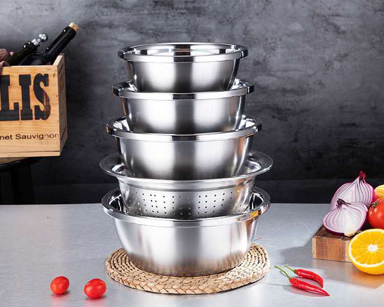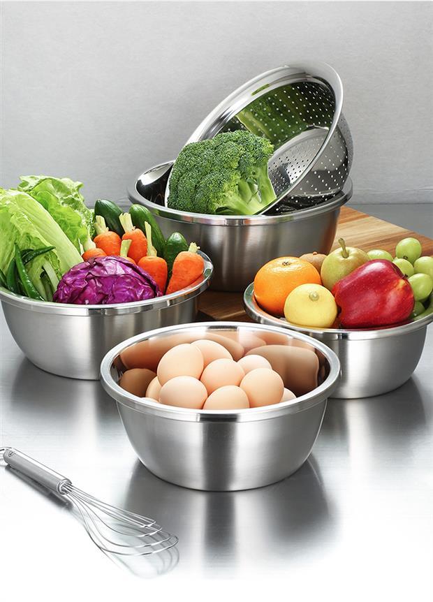 三次复团😎质量巨好超火的易铂食品级【欧式套盆5件套】59元一整套打包带走‼️ 食品级不锈钢材质加厚加深,超强承重!节省空间🥣啥啥都能干,啥啥都能装,加厚材质,厚实不易变形🧡功能多样,四盆一筛,一套全搞定,满足厨房多需求。 🉑️用于电磁炉直接加热️当锅用,热汤很方便,且不挑炉灶💯