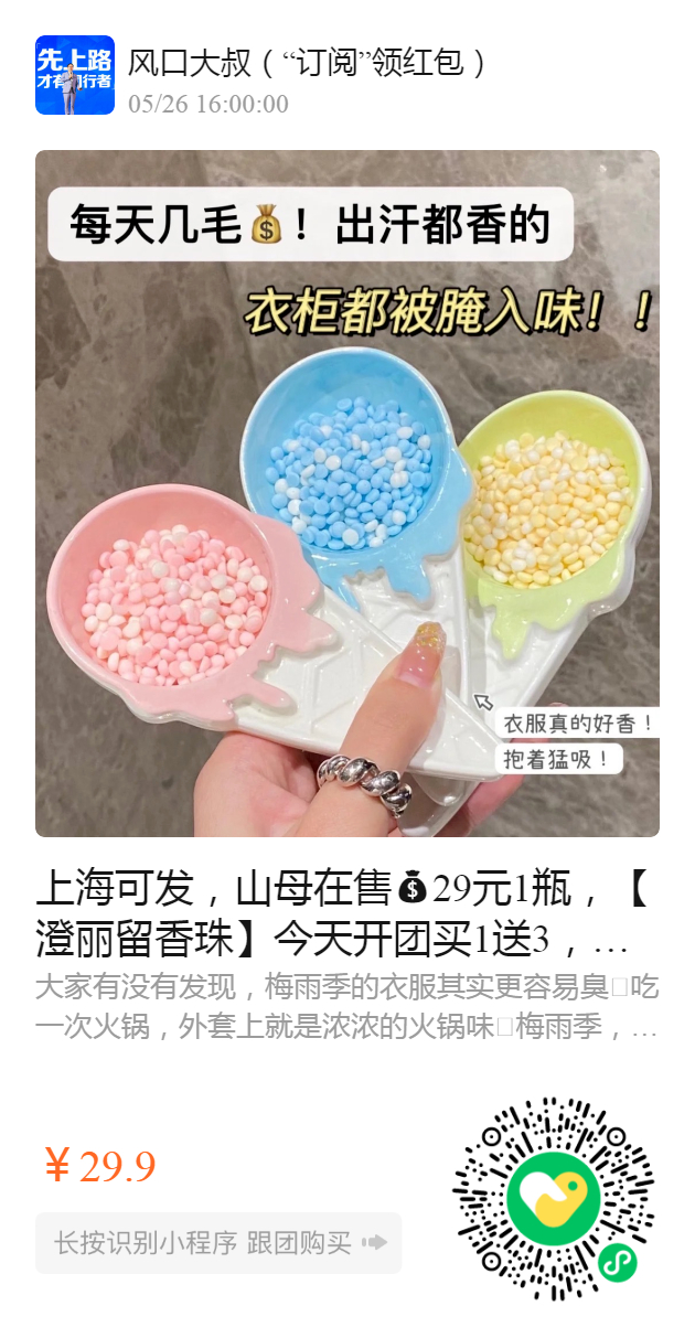 上海可发,山母在售29元1瓶,【澄丽留香珠】今天开团买1送3,限时秒杀厂价直销29.9一共4瓶,真的是骨折啊! ✅留香珠4瓶只要29.9🤩 大容量更实惠,抢到就是赚到啊!!! 🏖️夏天用它洗过的衣服,柔软,清香,身上都自带体香,摩擦后还会再次释放香味哦🫧持久留香直接遮挡掉臭汗味🫣🫣