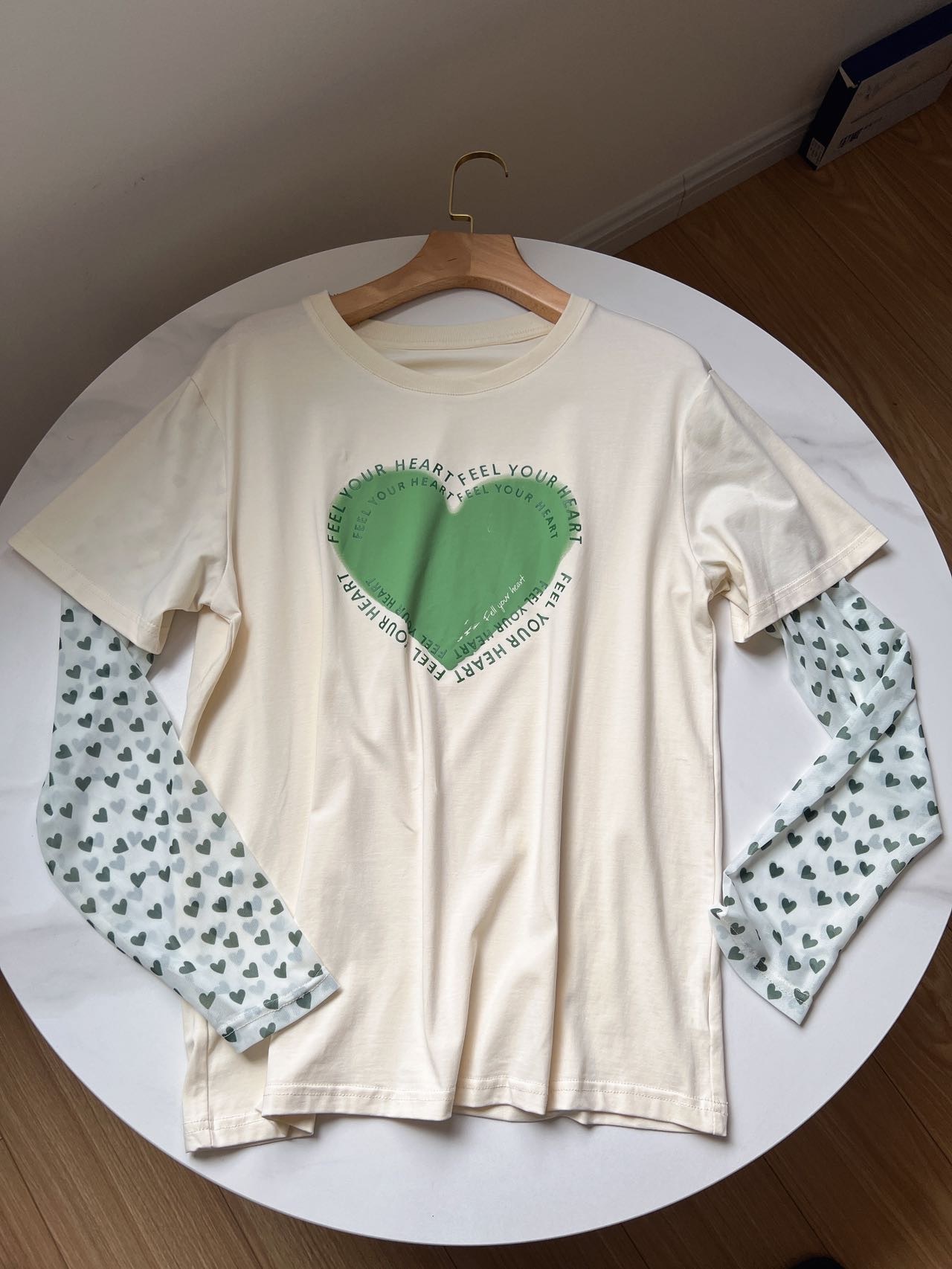 伊芙丽爱心假两件防晒T恤