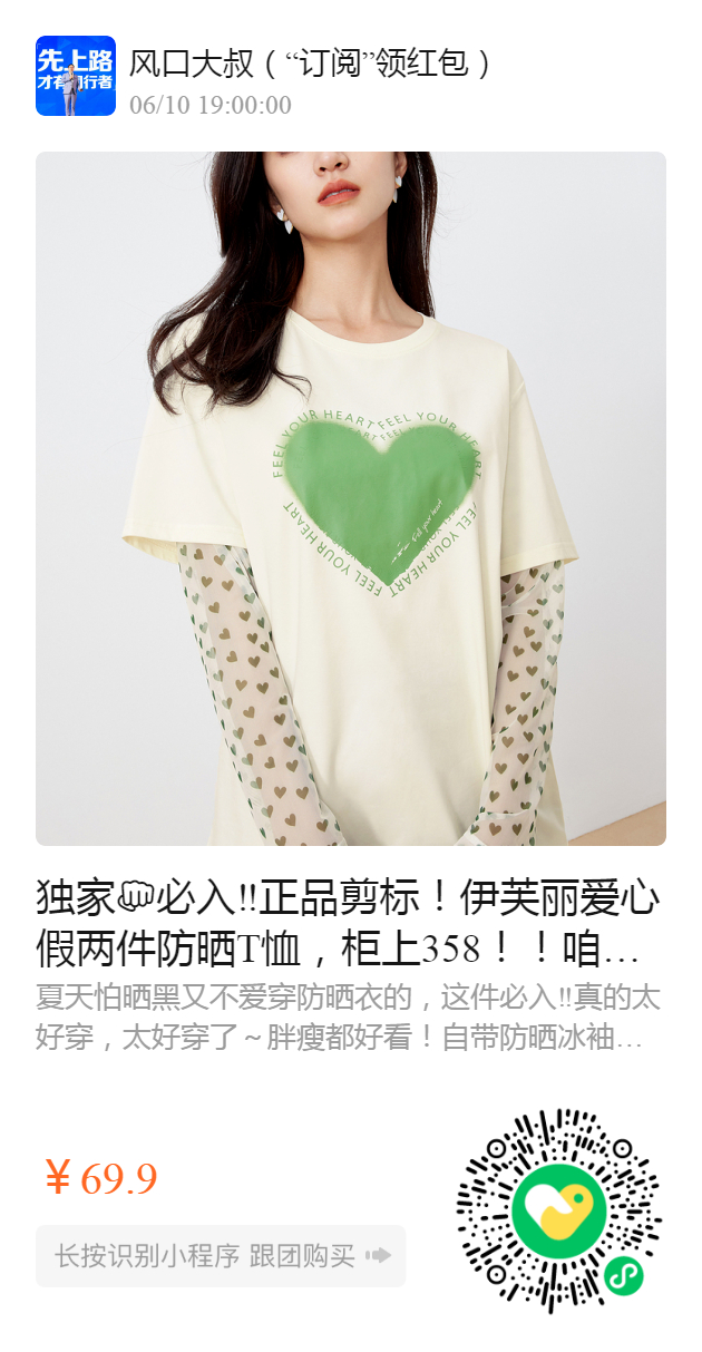 独家必入‼️正品剪标!伊芙丽爱心假两件防晒T恤,柜上358!!咱们69.9秒它!夏天晒不黑的秘籍!幂式穿搭风,简约舒适!时尚度拉满