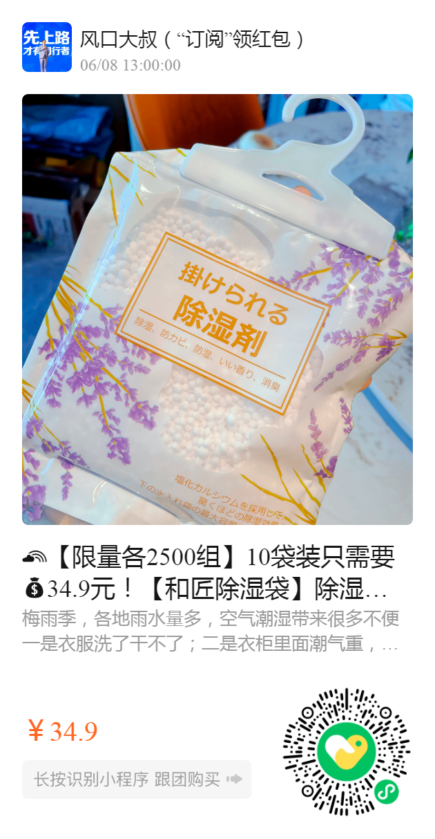 【限量各2500组】10袋装只需要34.9元!【和匠除湿袋】除湿去味神器!!挂在家里,潮湿水汽全都被它“吃进肚子”除湿,防霉,防潮,去味🉑都搞定!