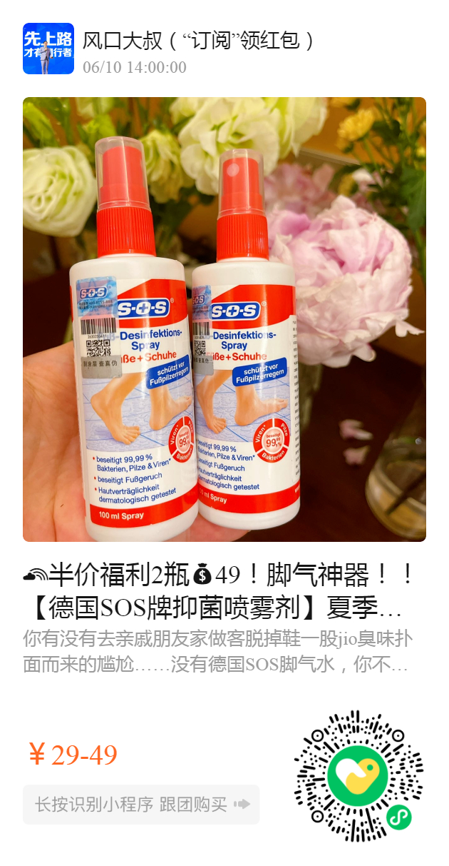 半价福利2瓶49!脚气神器!!【德国SOS牌抑菌喷雾剂】夏季必备💥德国最新杀菌除臭科技 有效灭杀99.99%脚气细菌、真菌去除异味、杀菌、抑臭除汗母婴级配方 温和无刺激~