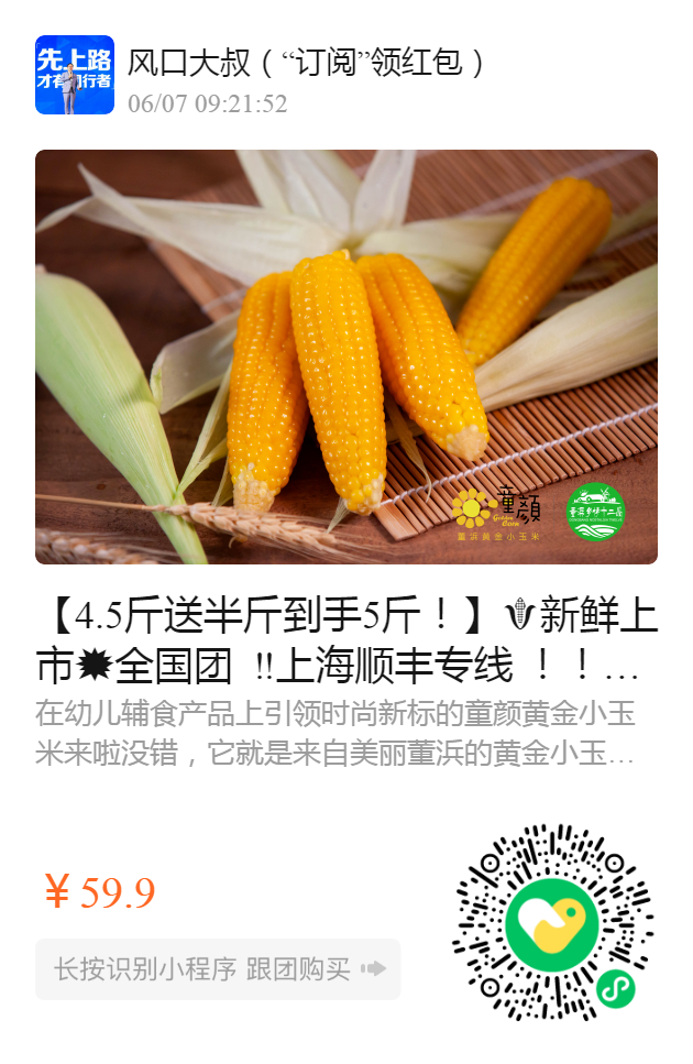 【4.5斤送半斤到手5斤!】🌽新鲜上市💥全国团 ‼️上海顺丰专线 !!【🌽童颜黄金小玉米】董浜·童颜小玉米·官方认证第六年‼