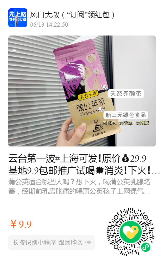 🏻人人都要喝的养生茶【云台小冰·蒲公英茶】采摘当季新鲜原材料经人工分拣、筛选、高科技气泡清洗低温烘培️茶质干净无杂质茶香自然清香、不苦、醇厚不涩~