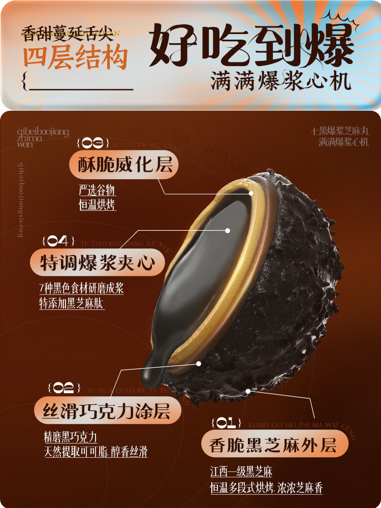 x x x不播了!新日期5折!2桶 88!芝麻界的费列罗‼️口感无敌,老金七黑食材还爆浆❗四层结构 层层爆浆!
