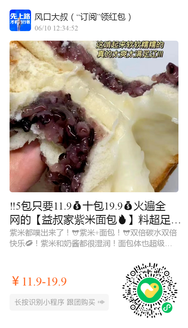 ‼️5包只要11.9十包19.9火遍全网的【益叔家紫米面包】料超足健康美味🤤看得见的优质食材