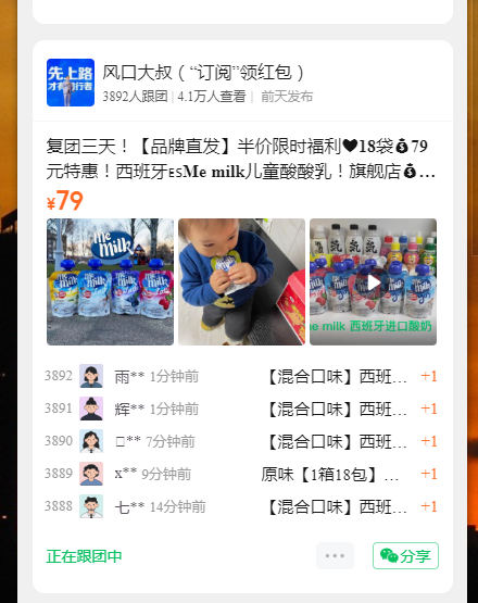 复团三天!【品牌直发】半价限时福利️18袋79元特惠!西班牙Me milk儿童酸酸乳!旗舰店149!平均4.3元一包!营养科学配比,特有液体钙、维生素A、维生素D,memilk吸吸奶提供儿童日常所需,先进物理防腐技术!