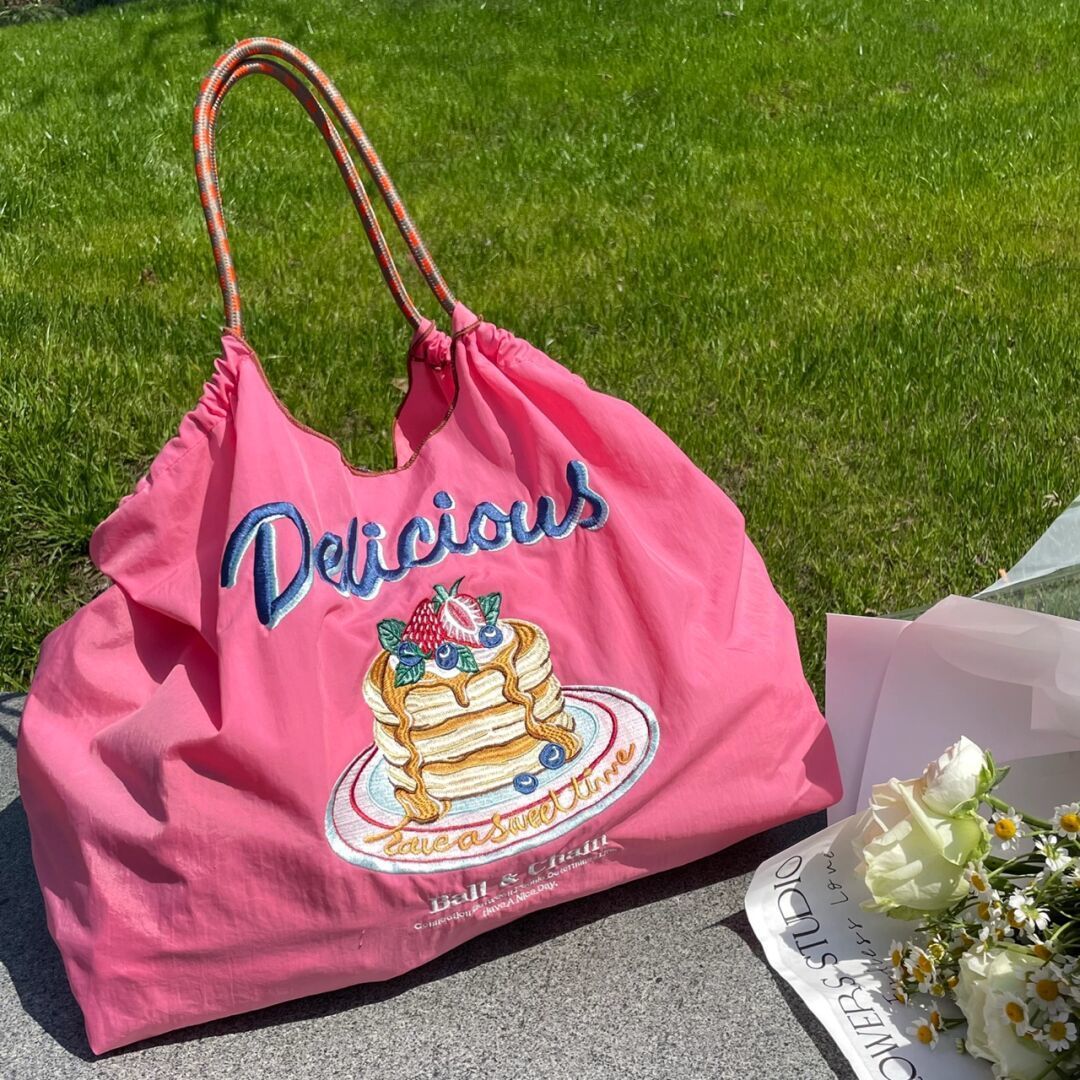 日本爆卖 出游野餐必备,易梦玲同款ball chain购物袋❗️ 每个颜色画风都充满少女感,精美刺绣质感满满一眼就沦陷