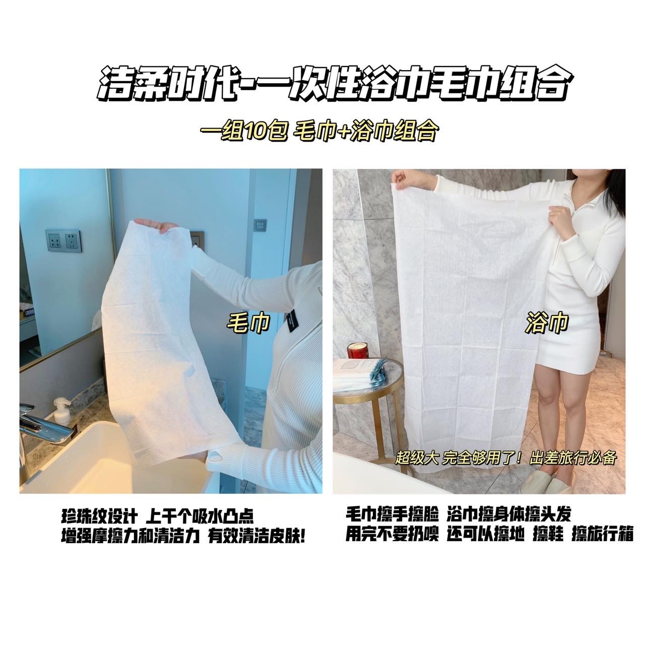 一次性绵柔毛巾+浴巾组合