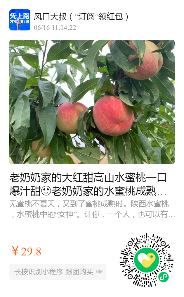老奶奶家的大红甜高山水蜜桃 一口爆汁甜老奶奶家的水蜜桃成熟了,真正的自然熟,甜度恰到好处,让人欲罢不能,每年复购最好的水蜜桃 奶奶家高山水蜜桃 奶奶还是那个奶奶 味道还是那个味道 咬一口,忘不了