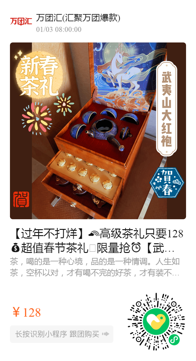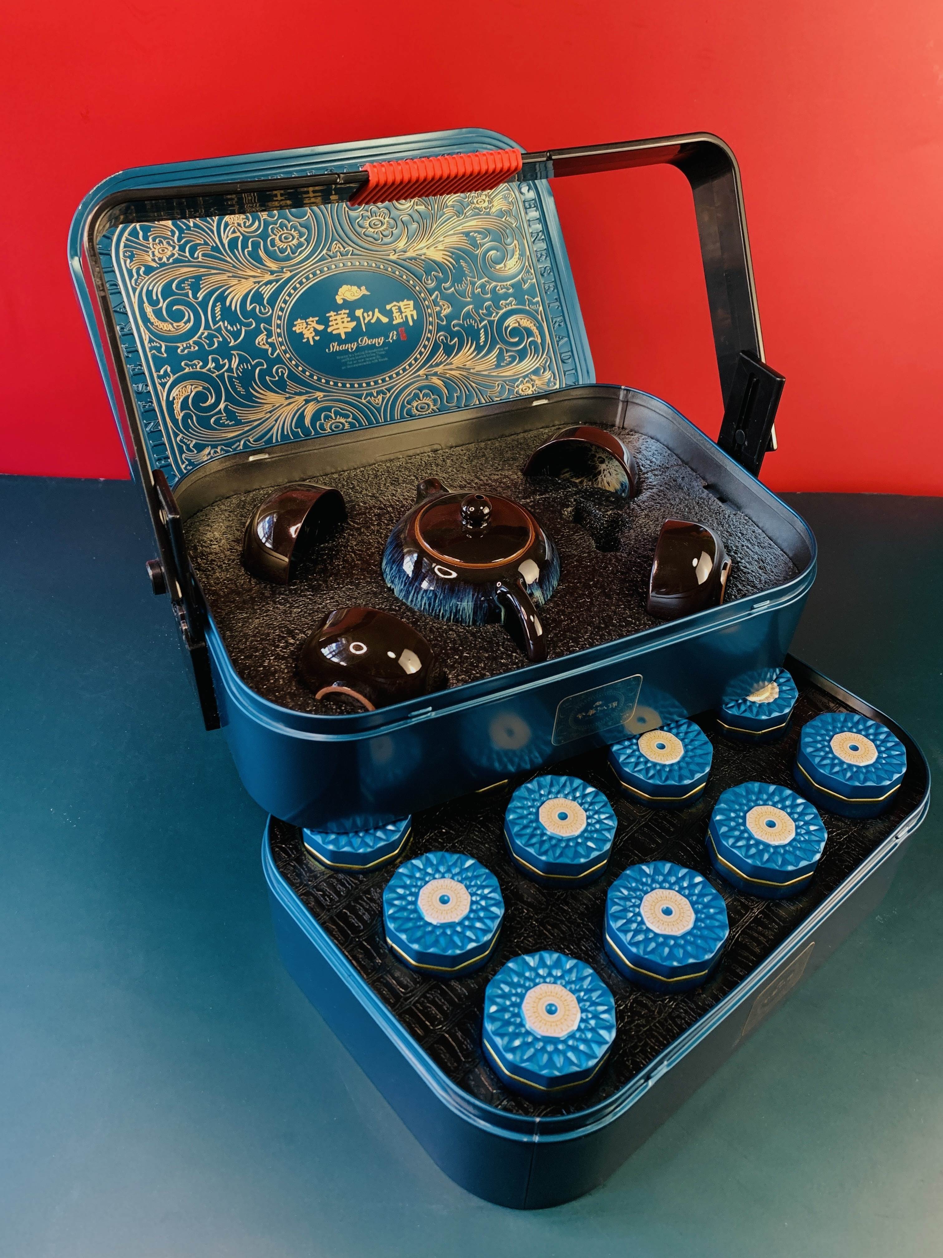 【过年不打烊】高级茶礼只要128超值春节茶礼🛍限量抢⏰【武夷山大红袍礼盒】[繁华似锦 醉千杯 高订款] [尊礼礼盒款] [一路连升] 高档墨蓝色 花西子国潮风设计 满满古风感 一级订制德化传世哥窑陶瓷 手感质感顶呱呱 配上武夷山⛰一级大红袍250克 12罐 既有档次又有内涵 茶叶茶具一应俱有!一套通行南北 送礼再合适不过了~