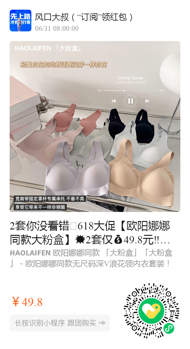 2套你没看错🌝618大促【欧阳娜娜同款大粉盒】💥2套仅49.8元‼️(含内裤)ubras同款小浪花内衣套装!某宝148已售8W件 我们今天内衣内裤套装发!终于找到大胸可穿内衣无痕!️V字减压肩带✔️预防下垂✔️舒适不勒!全件一片式设计弹力十足‼️ 软乎乎的不要太舒服️