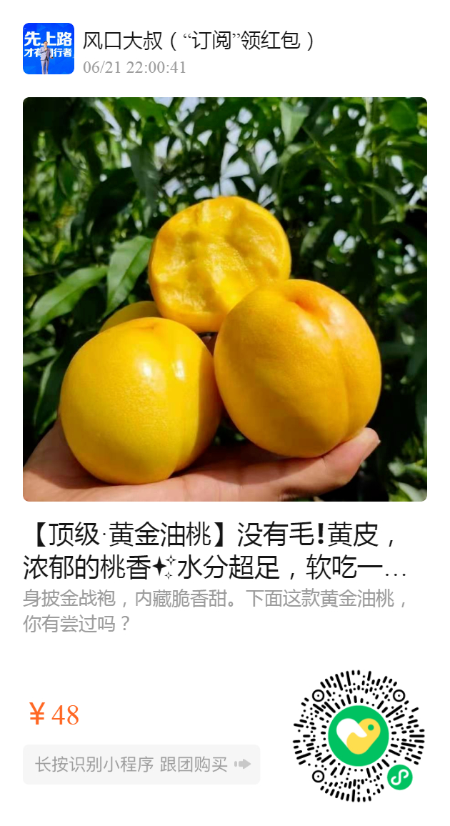 【顶级·黄金油桃】没有毛❗️黄皮,浓郁的桃香水分超足,软吃一口爆汁香甜️ 一分钱一分货,我们只卖最好吃的桃 黄金油桃🍑可以说是油桃界的“爱马仕”!生态种植出的地理标志保护产品,黄金油桃品种多,我们只选取最好吃的发货