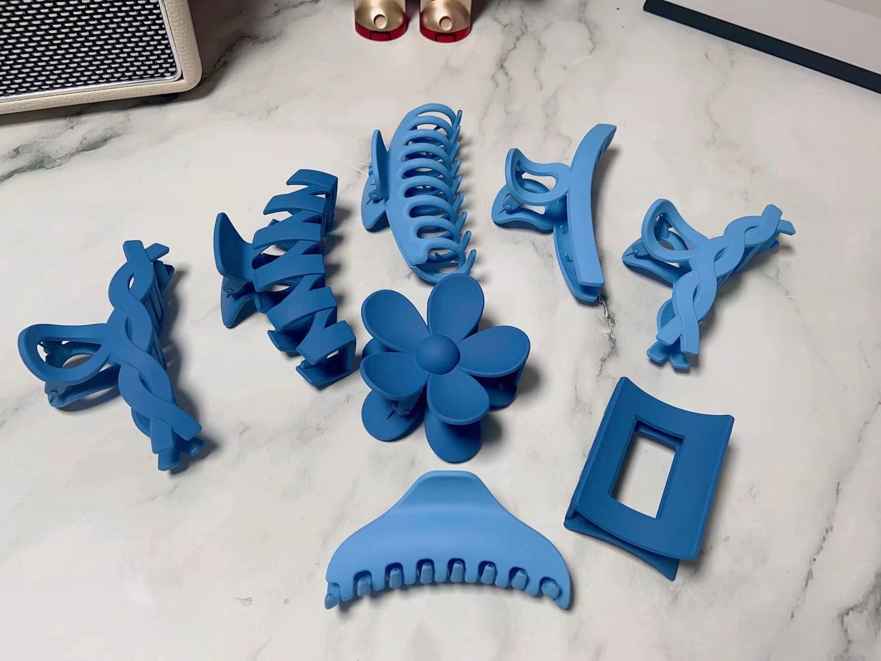 克莱茵蓝韩国优雅气质鲨鱼夹子脑勺盘发发抓大号发夹8件套 时尚气质克莱茵蓝系列抓夹 灰常治愈的蓝色磨砂高级感抓夹,韩版气质优雅 气质时尚,精致的猪猪女孩推荐哟~