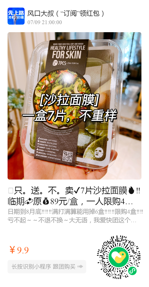 🥗只。送。不。卖✔️7片沙拉面膜‼️临期💫原89元/盒,一人限购4盒【Farmskin梵斯可沁富先康沙拉面膜】鳄梨款·打造柔软嫩白的皮肤🥰🥰