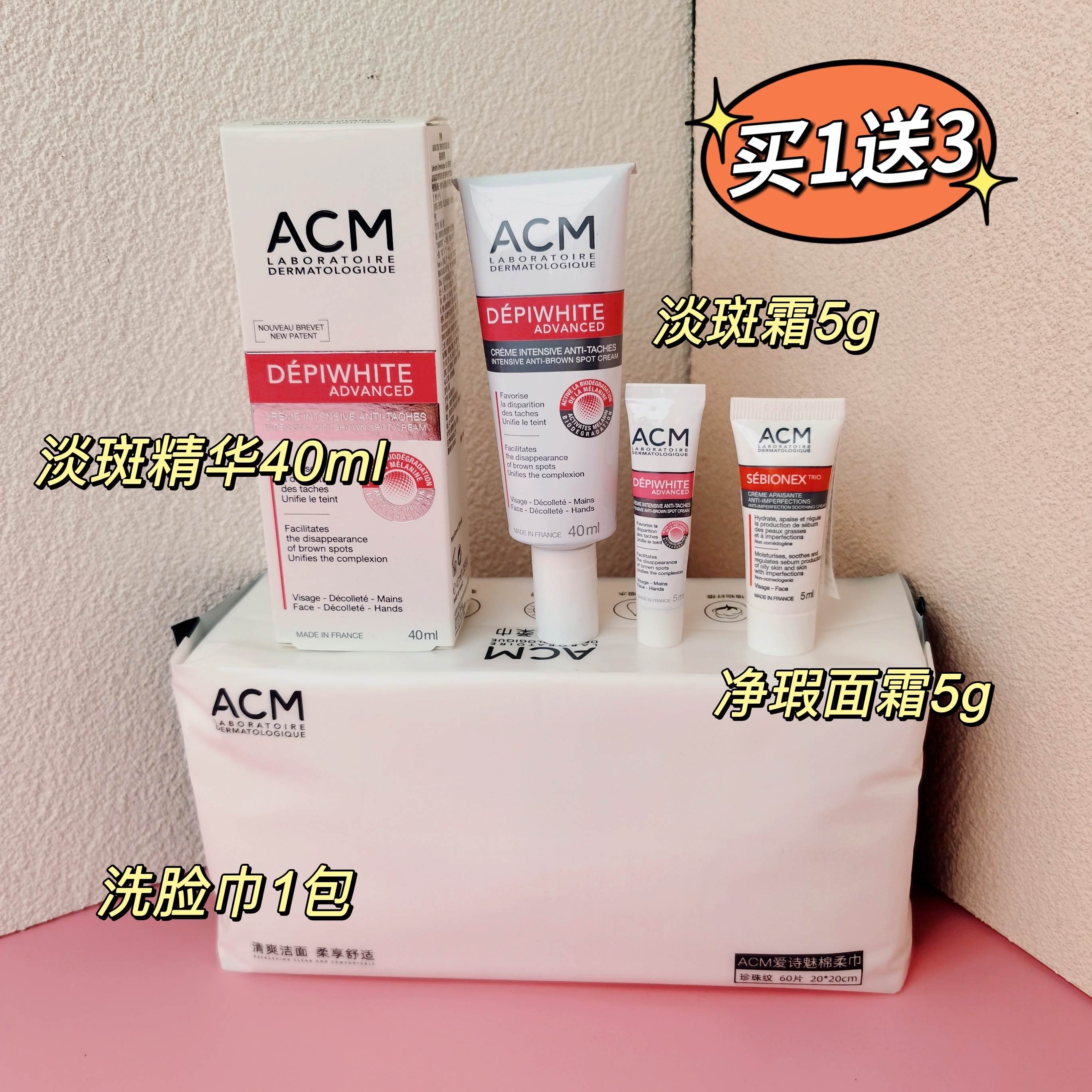 再送ACM淡斑霜5g➕ACM净瑕面霜5g➕ACM洗脸巾1包