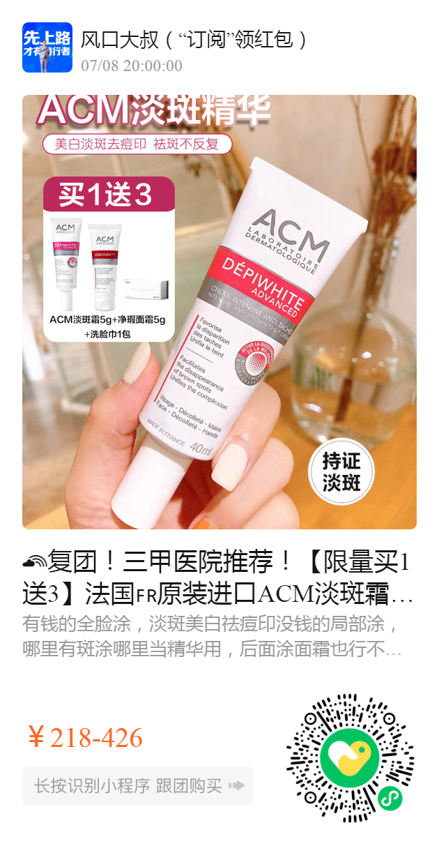 复团!三甲医院推荐!【限量买1送3】法国原装进口ACM淡斑霜 ,李佳琦直播间10分钟秒卖2w支, 旗舰店月销7000+,💯百分百正品, 官方授权!法国专利,黑色素降解!对于各种斑点有效,美白淡斑去痘印,祛斑不反复!
