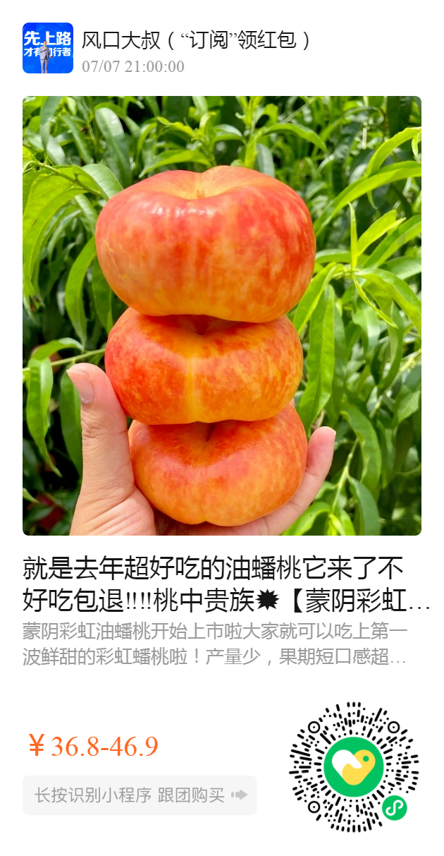 桃中贵族💥【蒙阴彩虹油蟠桃】每年都火的一塌糊涂现在只需46.9元,到手4.5斤以上~满满一箱!!