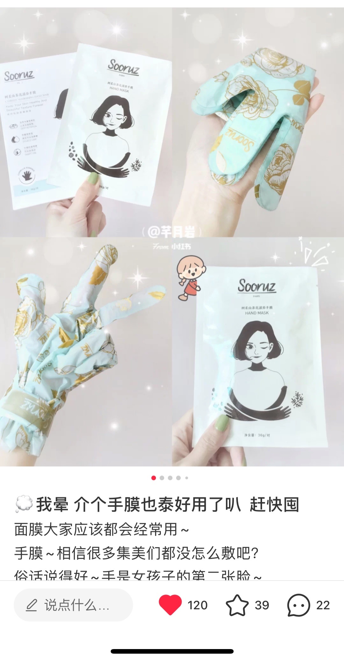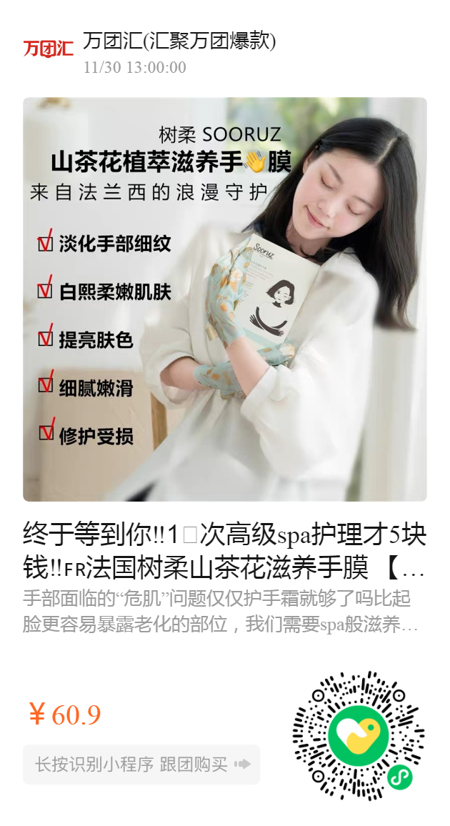 终于等到你‼️️次高级spa护理才5块钱‼️法国树柔山茶花滋养手膜 【自己在家做一次高端手部护理】一次手膜≈一只护手霜的精华,春节粗糙受损的双手赶紧修复起来,小手一次比一次嫩!