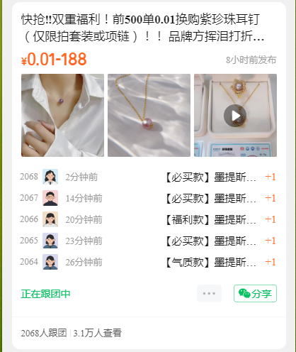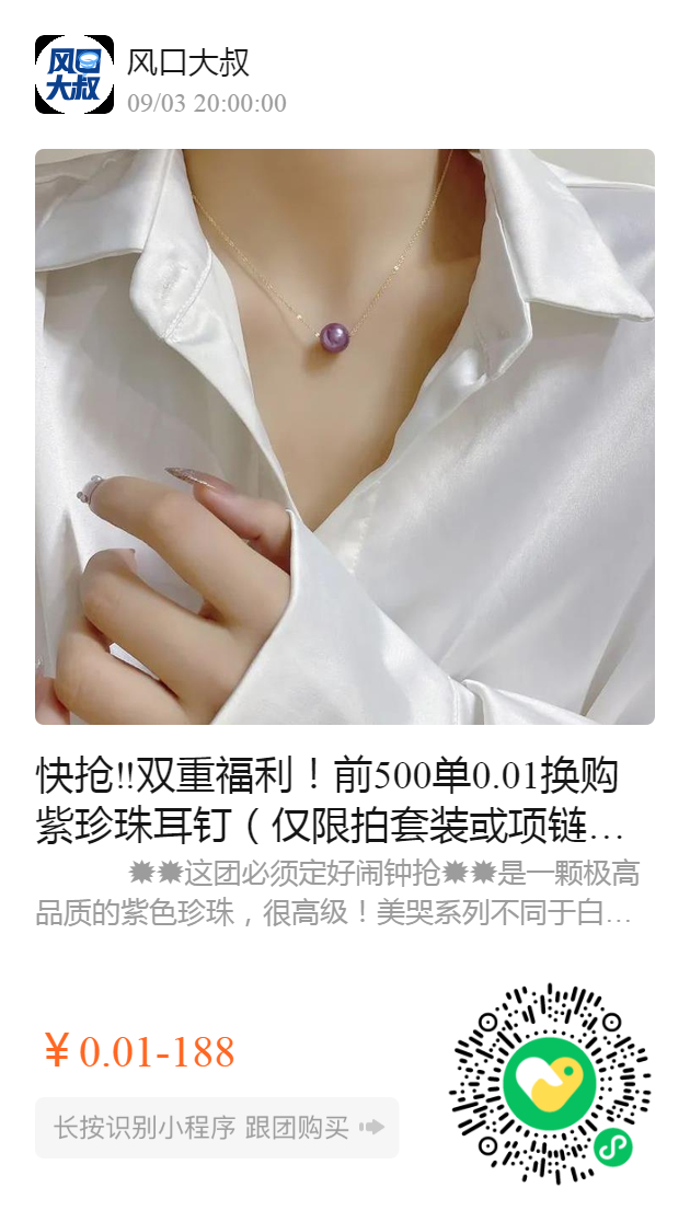快抢‼️双重福利!前500单0.01换购紫珍珠耳钉(仅限拍套装或项链)!!