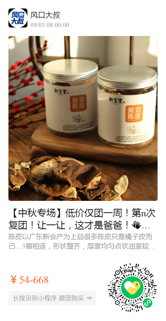 【中秋专场】低价仅团一周!第n次复团!让一让,这才是爸爸!百年老品牌——新宝堂陈皮!特殊时期多喝陈皮!新增礼盒版!