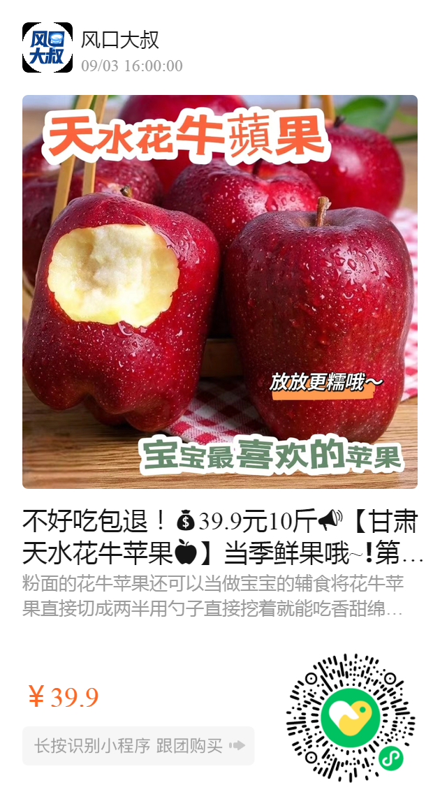 不好吃包退!39.9元10斤【甘肃天水花牛苹果】当季鲜果哦~❗