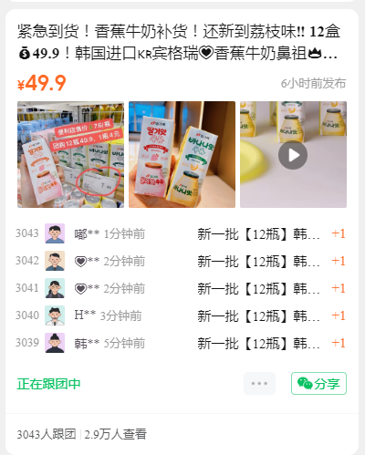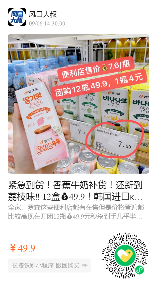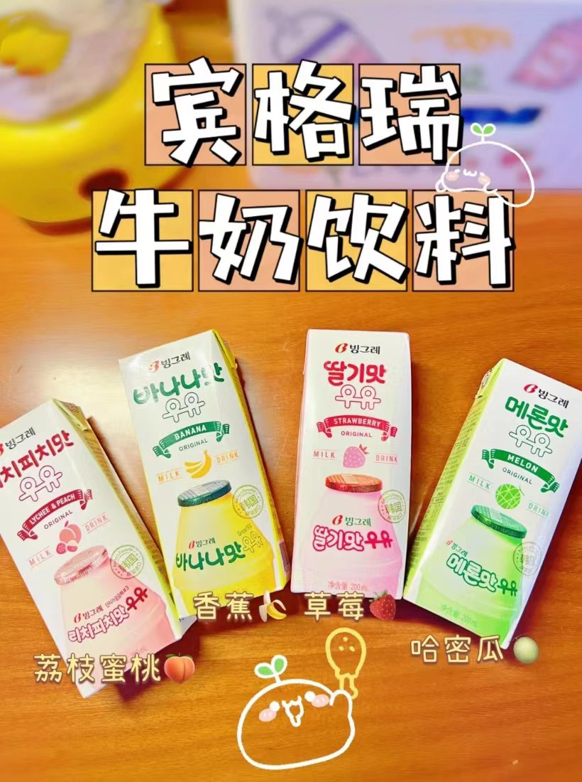 紧急到货!香蕉牛奶补货!还新到荔枝味‼️ 12盒49.9!韩国进口宾格瑞香蕉牛奶鼻祖全家,711,罗森等zui畅销牛奶之一 线下线上均价8元左右一瓶 开团每瓶低至4元!