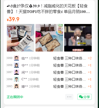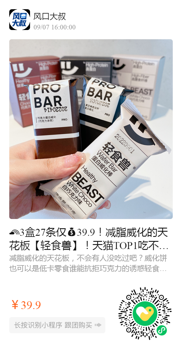 3盒27条仅39.9!减脂威化的天花板【轻食兽】!天猫TOP1吃不胖的零食️