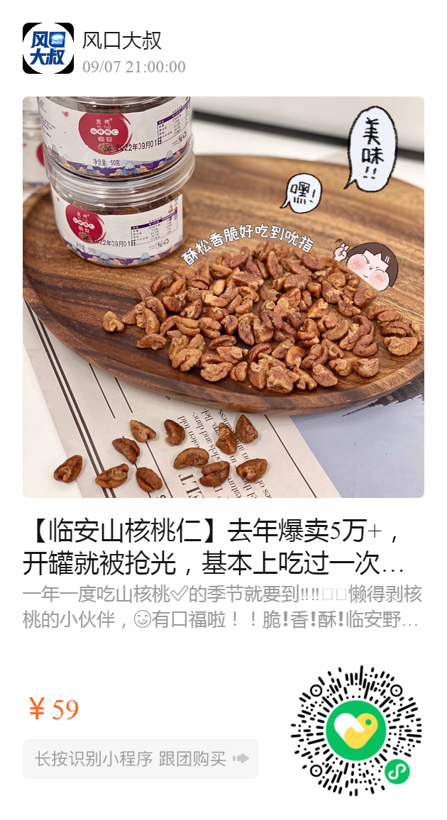 【临安山核桃仁】去年爆卖5万+,开罐就被抢光,基本上吃过一次,就对它念念不忘 【全部新核桃】全网火爆。脆❗️香❗️酥❗️临安野生山核桃仁✅酥松香脆好吃到吮手指头 18道复杂工序制作而成。省心省力不用手剥,还贼香!🏻老少皆宜,小孩也超爱。
